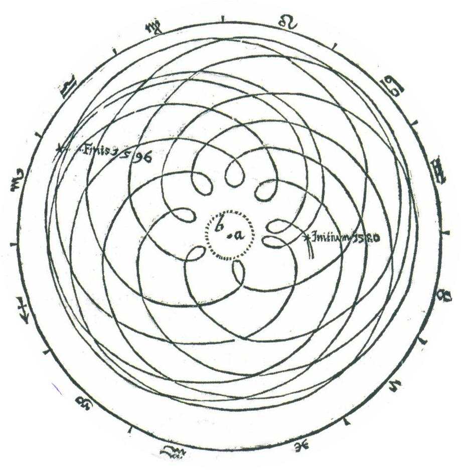 La trajectoire de Mars à partir du système épicycle – déférent selon les dimensions de l’orbite admises à son époque.