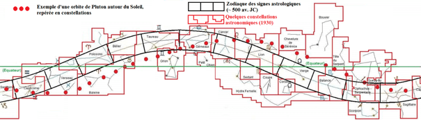 Une orbite de Pluton repérée dans les deux zodiaques (image tirée de mon essai critique : Astrologie, la fin des mystères (tome 1, chapitre 3)